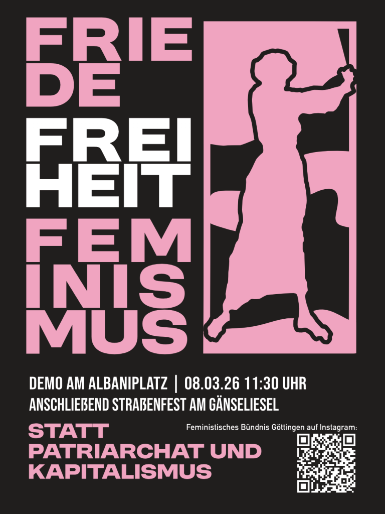 Rund um den internationalen Frauentag am 08. März finden in Stadt und Landkreis Göttingen zahlreiche tolle Veranstaltungen statt. Eine gute Übersicht bietet das Frauenforum Göttingen. Oder der Landkreis Göttingen. Schaut dort gerne vorbei!