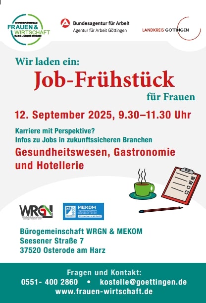 Job-Frühstück für Frauen in Osterode am 12. September: Gesundheitswesen, Gastronomie und Hotellerie
